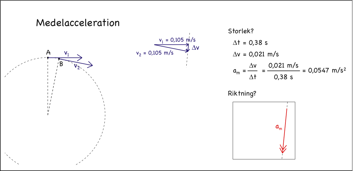 Bildsekvensen visar beräkning av medelaccelerationen under allt kortare tidsintervall.