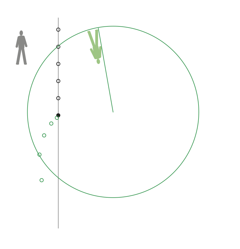 Boll far förbi rymdstationen längs en rät linje. Skillnaden