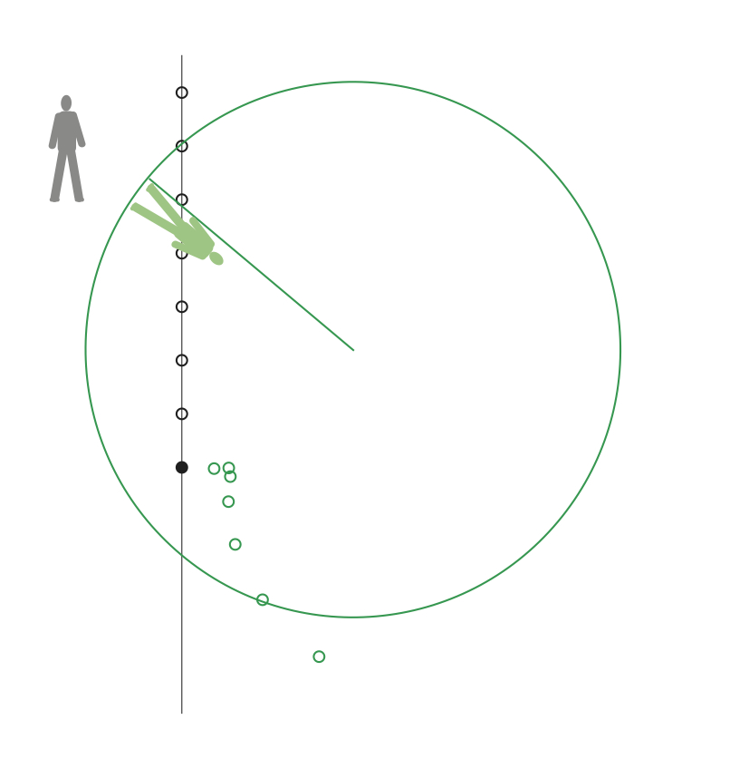 Boll far förbi rymdstationen längs en rät linje. Skillnaden