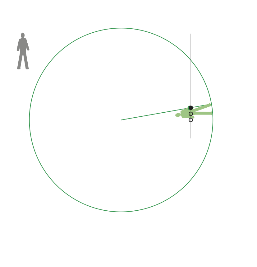 Bollens bana relativt rymdstationen framgår av de gröna ringarna.