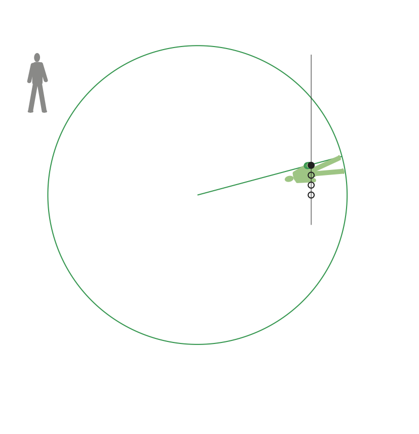 Bollens bana relativt rymdstationen framgår av de gröna ringarna.