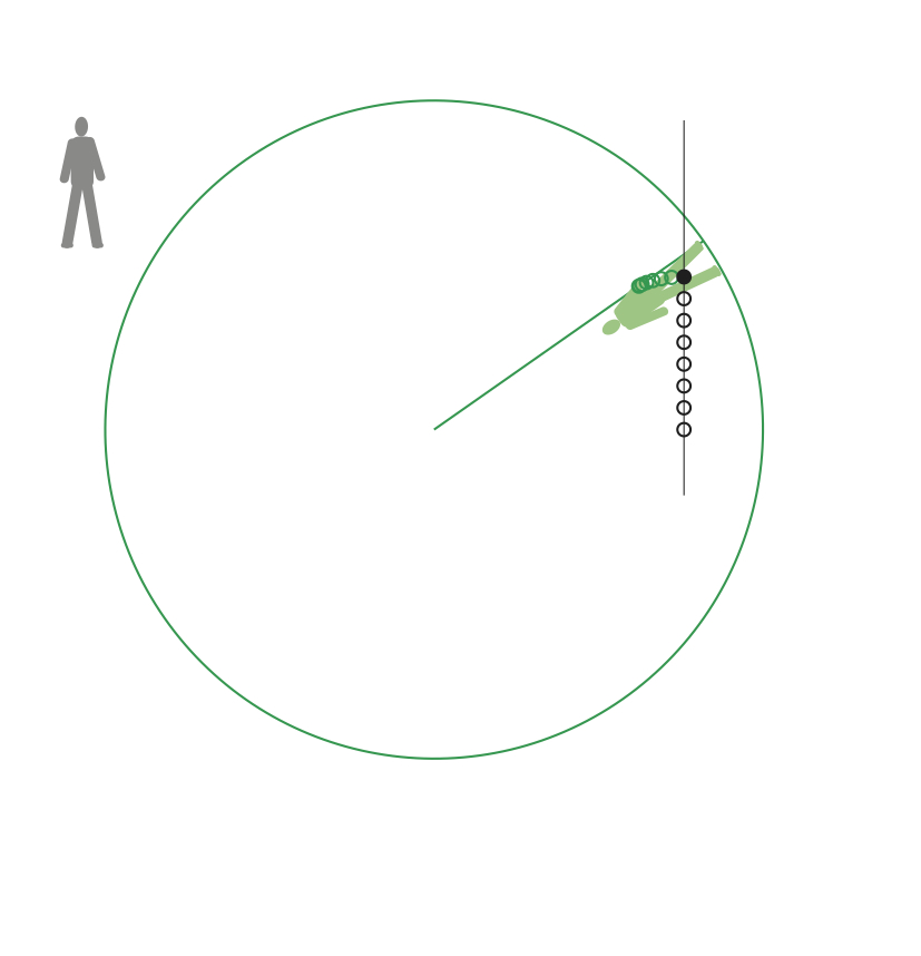 Om en person i rymdstationen släpper en boll kommer den att röra sig längs