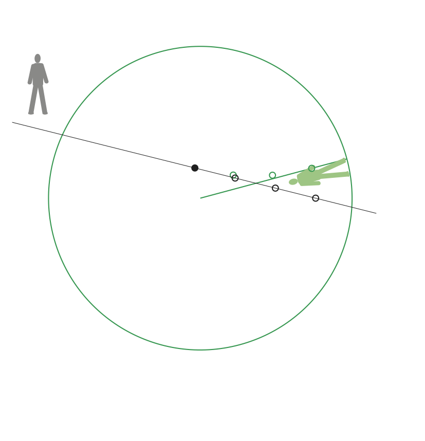 Bollens bana relativt rymdstationen framgår av de gröna ringarna.