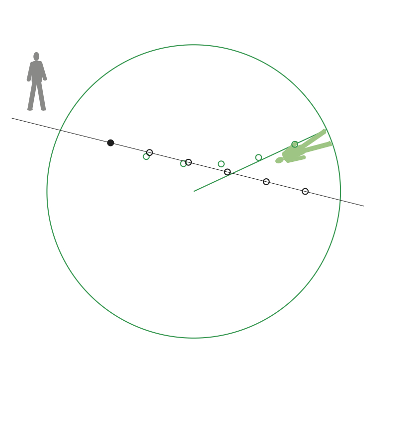 Bollens bana relativt rymdstationen framgår av de gröna ringarna.
