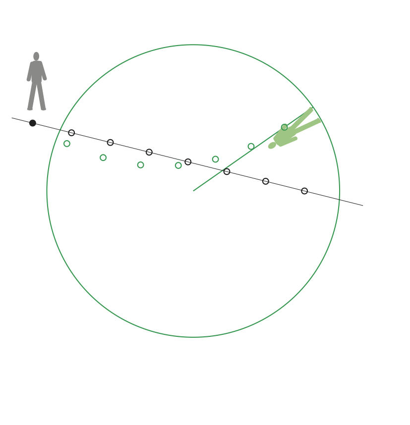 Bollens bana relativt rymdstationen framgår av de gröna ringarna.