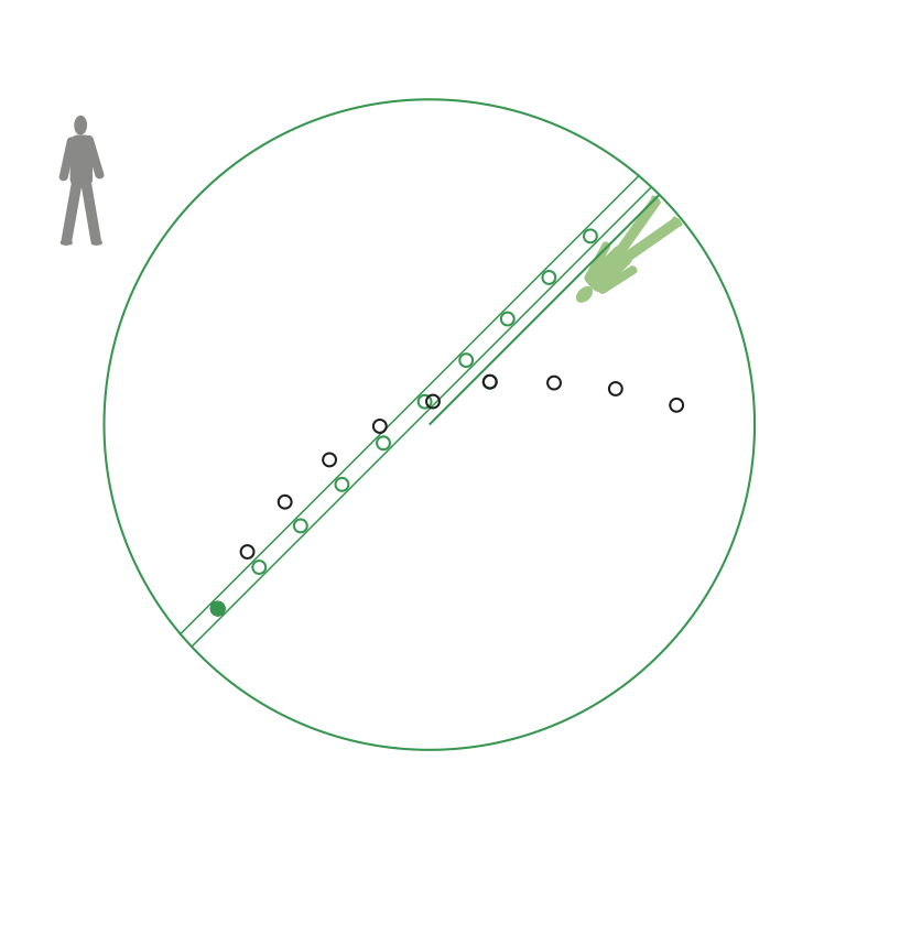 Bollens bana i absoluta rummet framgår av de svarta ringarna.