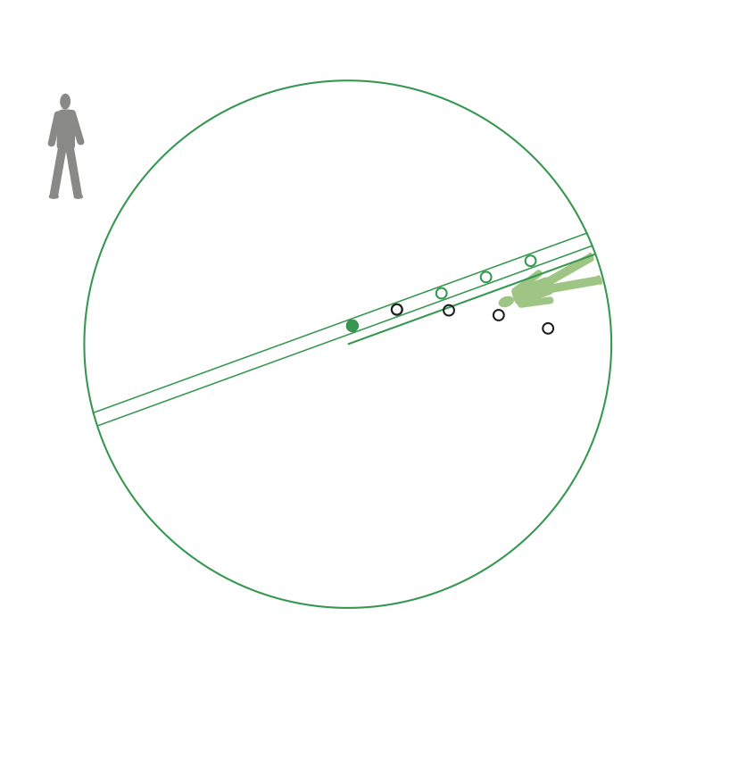Bollens bana relativt rymdstationen framgår av de gröna ringarna.
