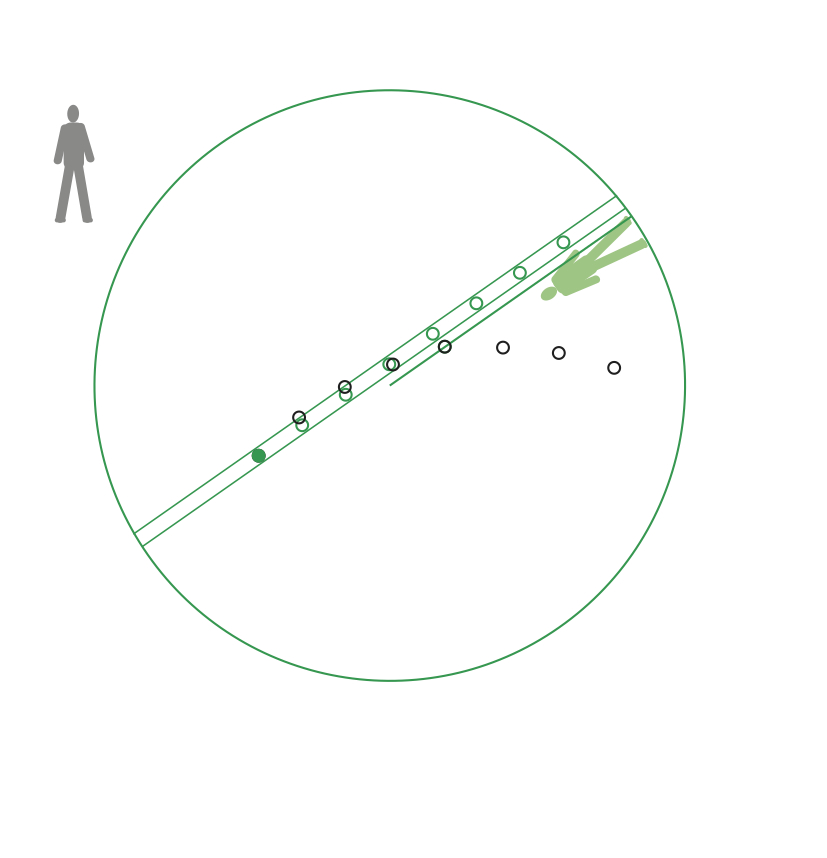 Bollens bana relativt rymdstationen framgår av de gröna ringarna.