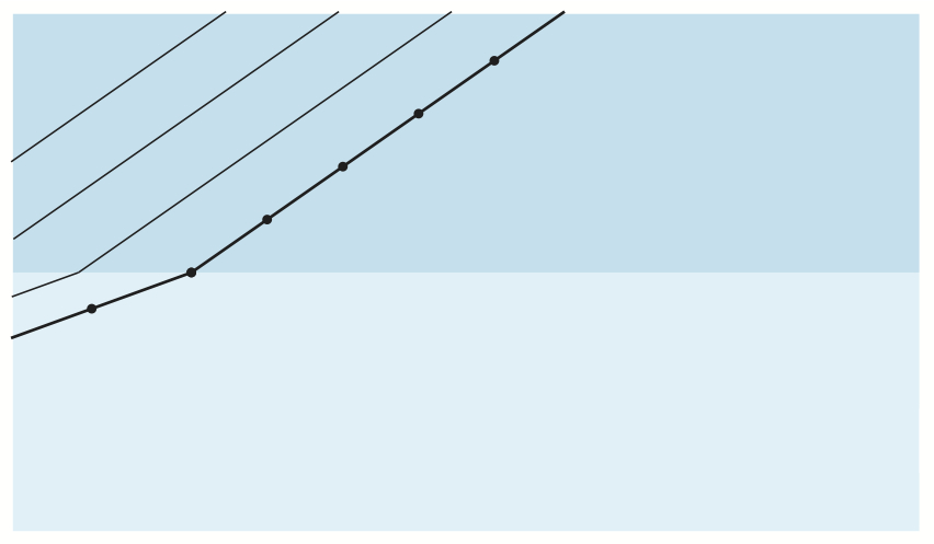 Bildserien visar hur en plan våg bryts vid passage av en gränsyta.
