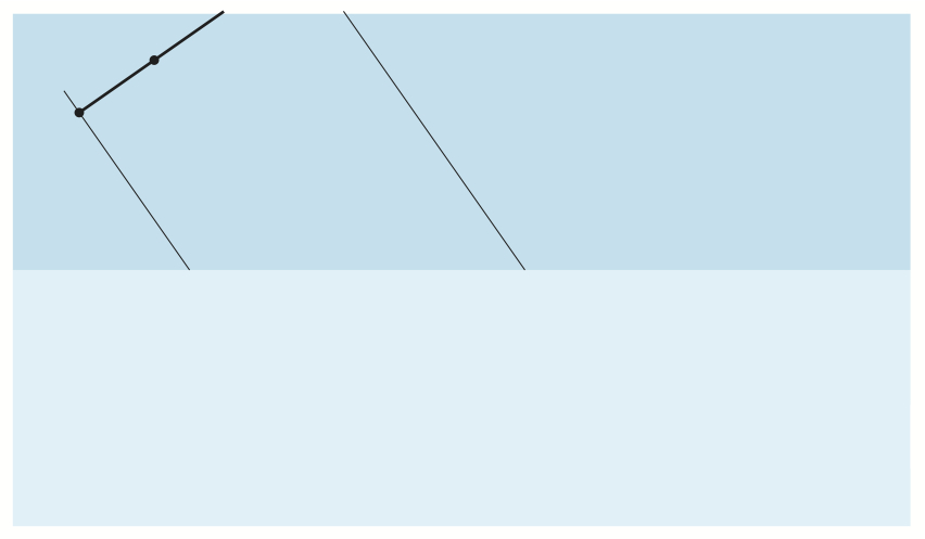 Bildserien visar hur en (del av en) plan våg reflekteras mot en gränsyta.