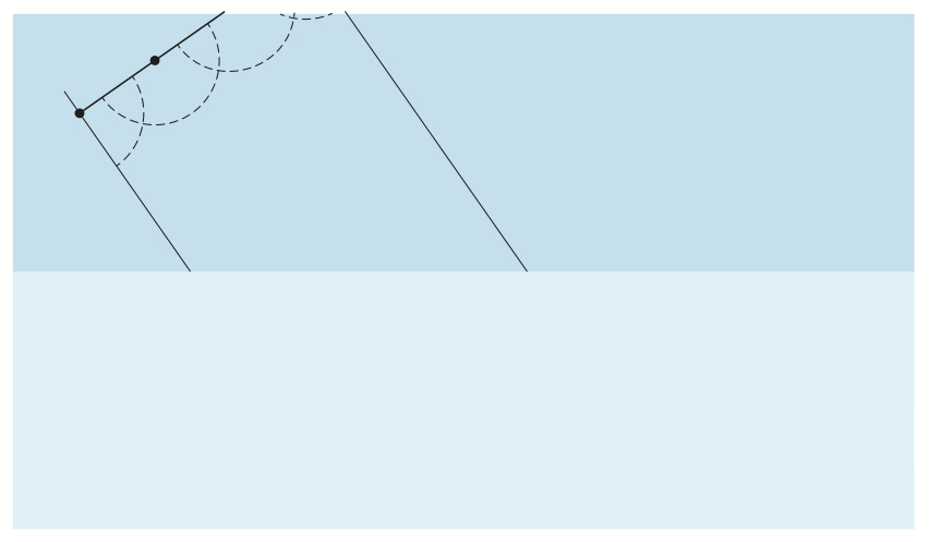 Bildserien visar hur en (del av en) plan våg reflekteras mot en gränsyta.