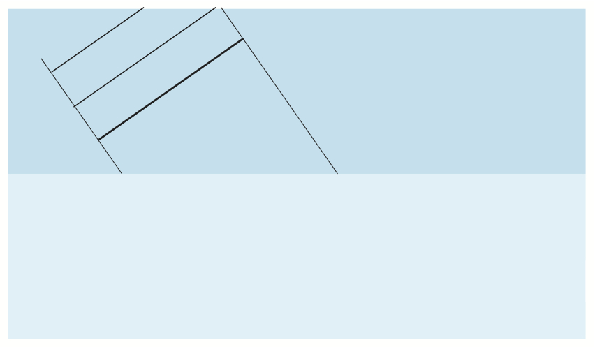 Bildserien visar hur en (del av en) plan våg reflekteras mot en gränsyta.