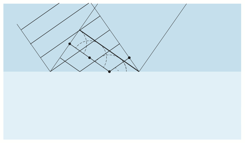 Bildserien visar hur en (del av en) plan våg reflekteras mot en gränsyta.