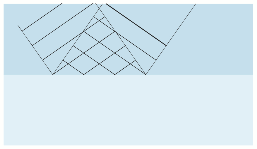 Bildserien visar hur en (del av en) plan våg reflekteras mot en gränsyta.