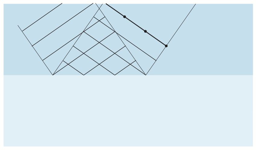 Bildserien visar hur en (del av en) plan våg reflekteras mot en gränsyta.
