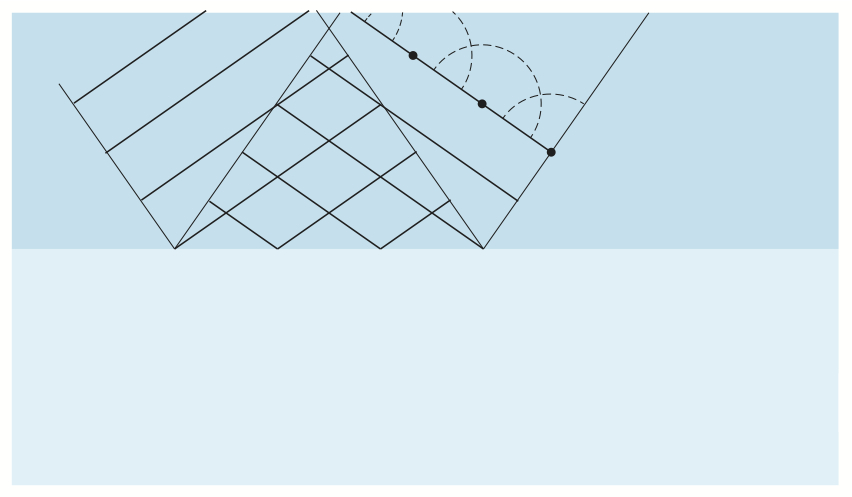Bildserien visar hur en (del av en) plan våg reflekteras mot en gränsyta.