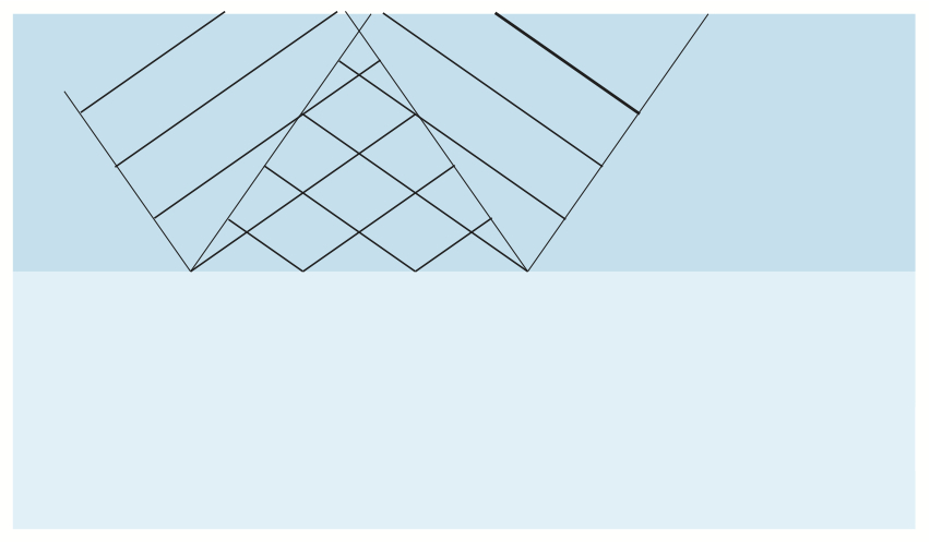 Bildserien visar hur en (del av en) plan våg reflekteras mot en gränsyta.