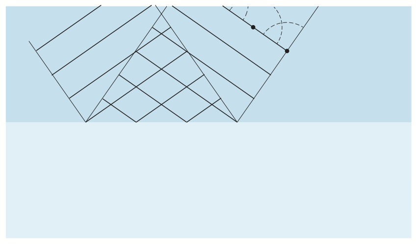 Bildserien visar hur en (del av en) plan våg reflekteras mot en gränsyta.
