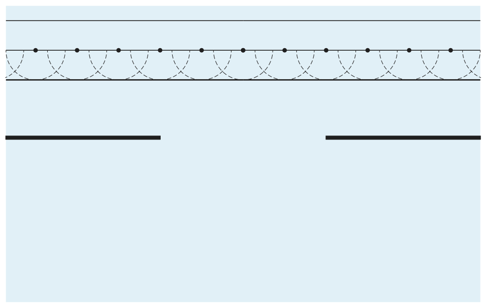 Bildsekvensen visar böjning av en plan våg vid passage genom en öppning.