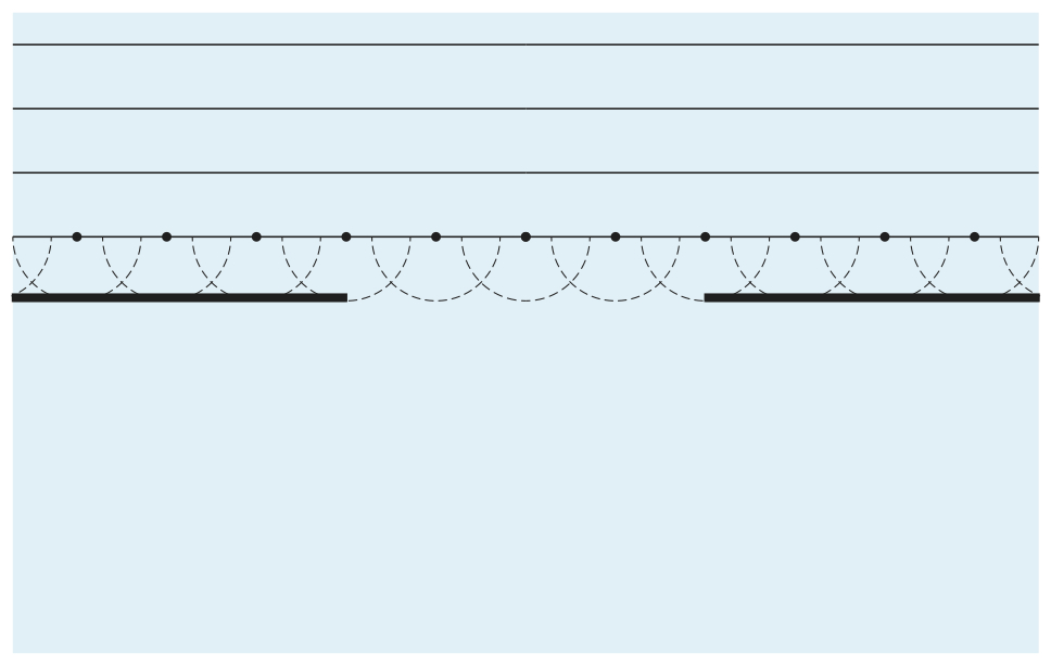 Bildsekvensen visar böjning av en plan våg vid passage genom en öppning.