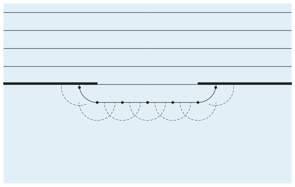 Bildsekvensen visar böjning av en plan våg vid passage genom en öppning.