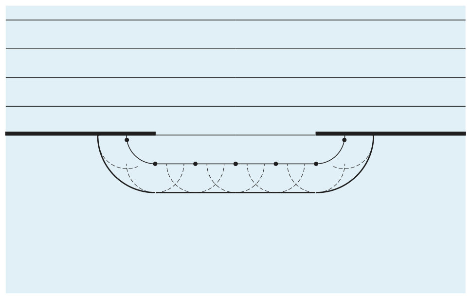 Bildsekvensen visar böjning av en plan våg vid passage genom en öppning.