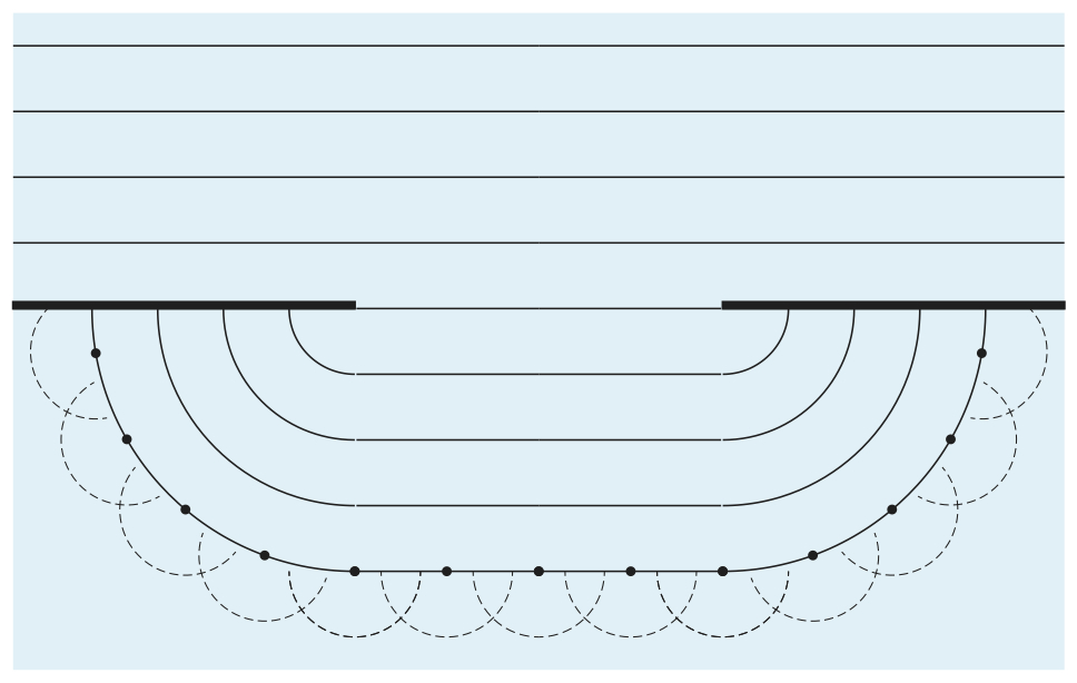 Bildsekvensen visar böjning av en plan våg vid passage genom en öppning.
