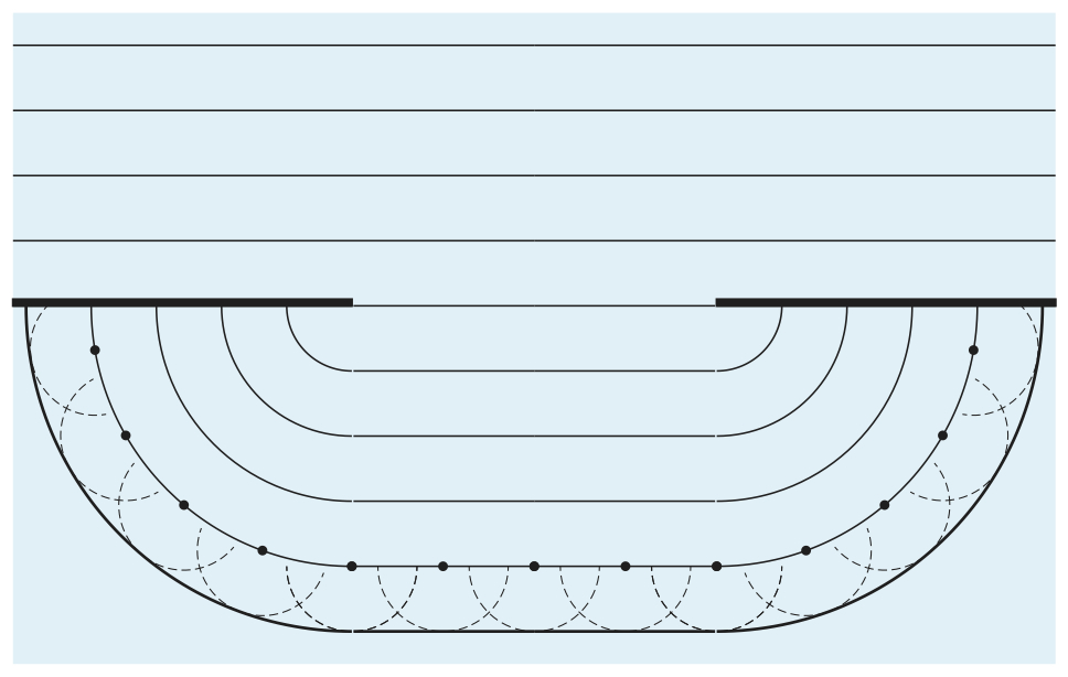Bildsekvensen visar böjning av en plan våg vid passage genom en öppning.