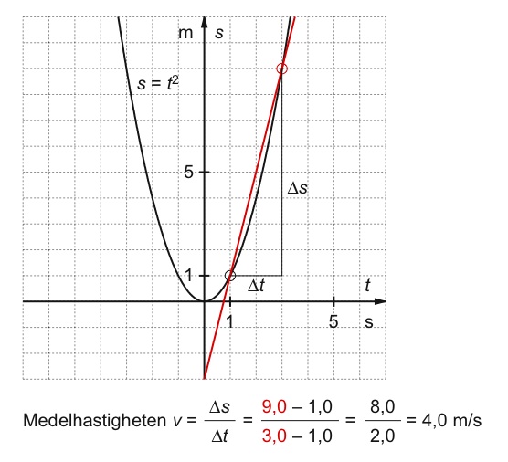 Bildsekvensen visar beräkning av medelhastigheten under allt kortare tidsintervall.