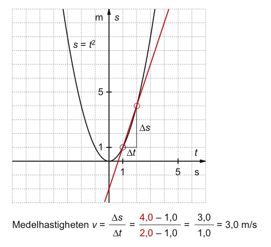 Bildsekvensen visar beräkning av medelhastigheten under allt kortare tidsintervall.