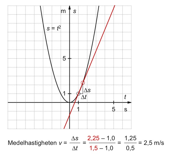 Bildsekvensen visar beräkning av medelhastigheten under allt kortare tidsintervall.