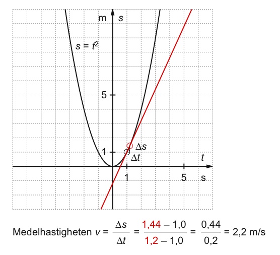 Bildsekvensen visar beräkning av medelhastigheten under allt kortare tidsintervall.