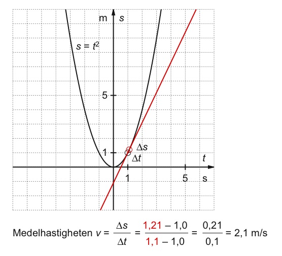 Bildsekvensen visar beräkning av medelhastigheten under allt kortare tidsintervall.