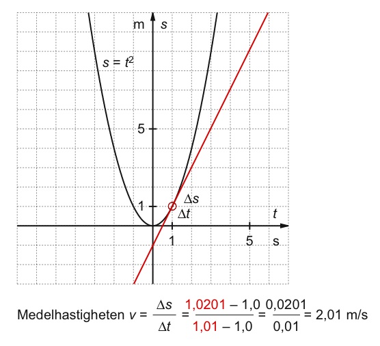 Bildsekvensen visar beräkning av medelhastigheten under allt kortare tidsintervall.