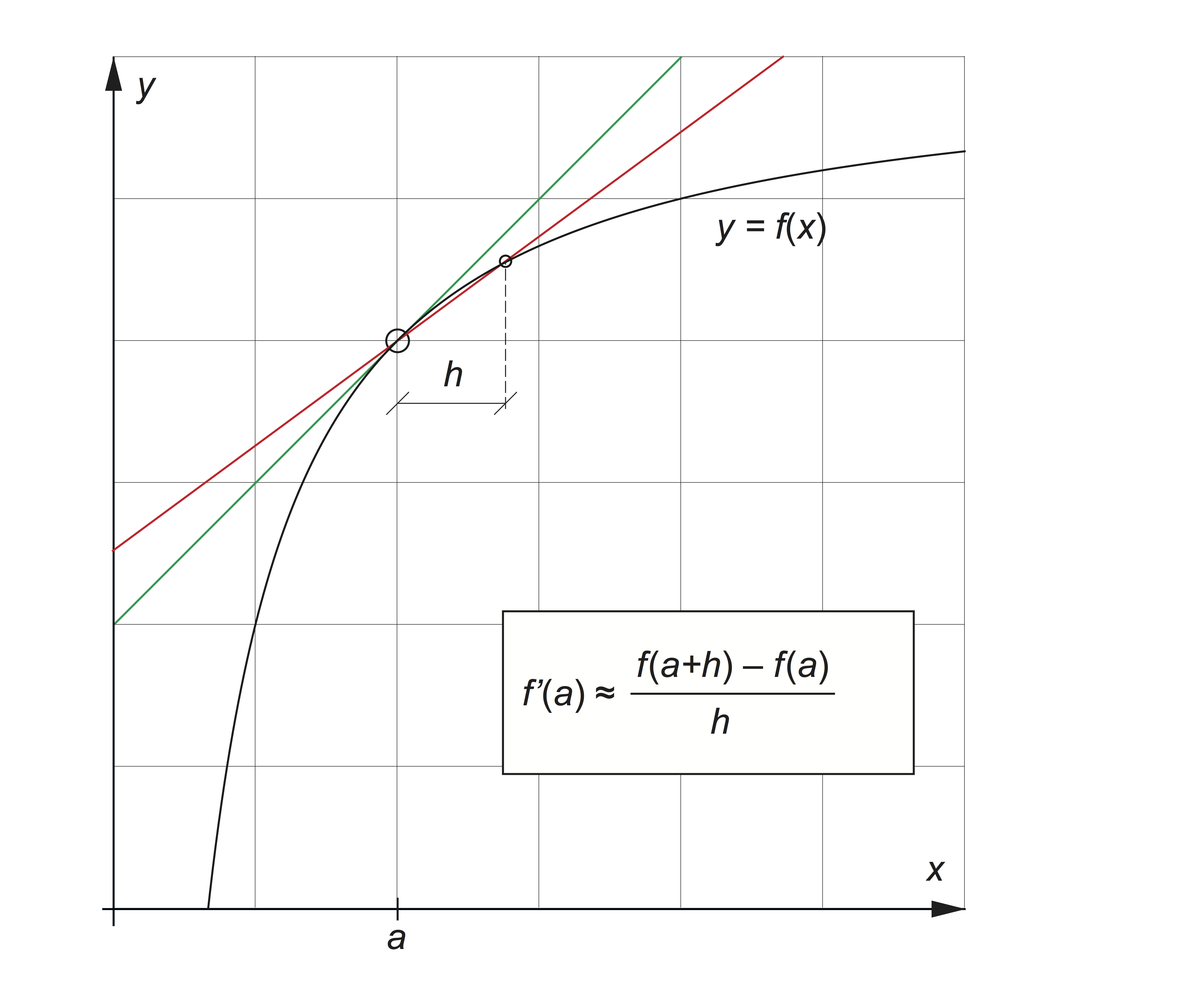 Ett ungefärligt derivatavärde kan bestämmas med hjälp av en differenskvot framåt.