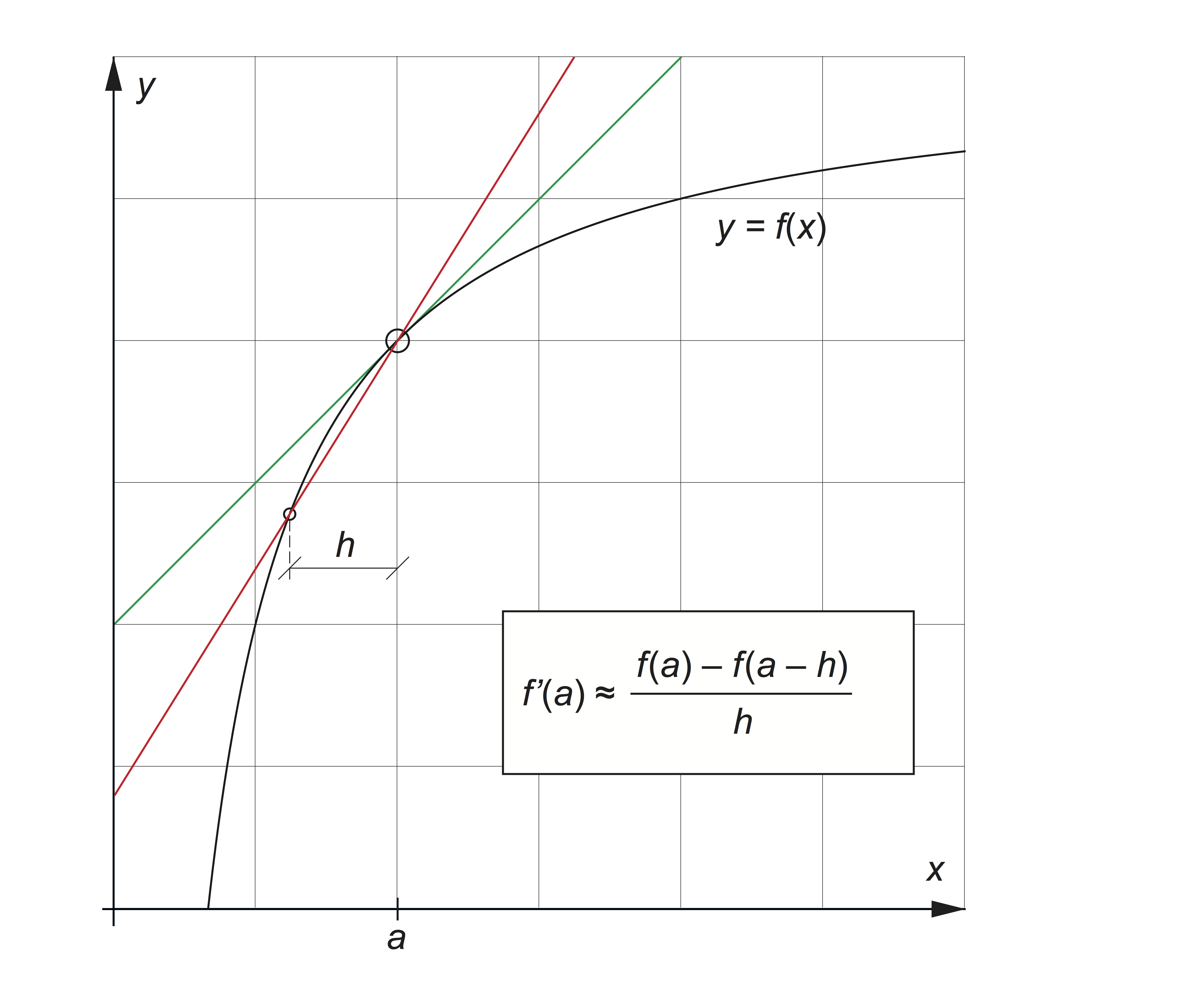 Ett ungefärligt derivatavärde kan bestämmas med hjälp av en differenskvot bakåt.